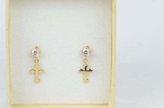 14K Yellow/White Gold CZ Cross Earrings / Screw Back Earrings / Stud Earrings / CZ Gold Earrings / Aretes en Oro Real de Cruz para Hombre y Mujer