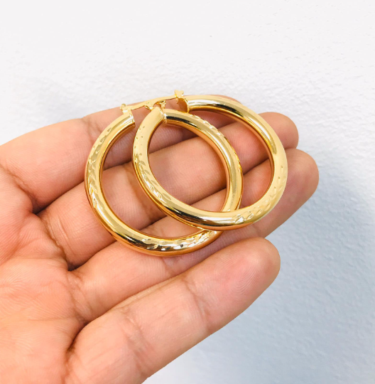 Gold Filled Hoop Earring Diamond Cut 1.8x1.6"