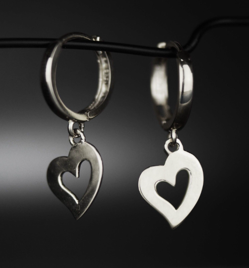 14K Yellow or White Gold Dangle Open Heart Huggies Earrings 9x9mm