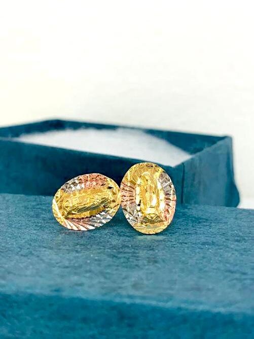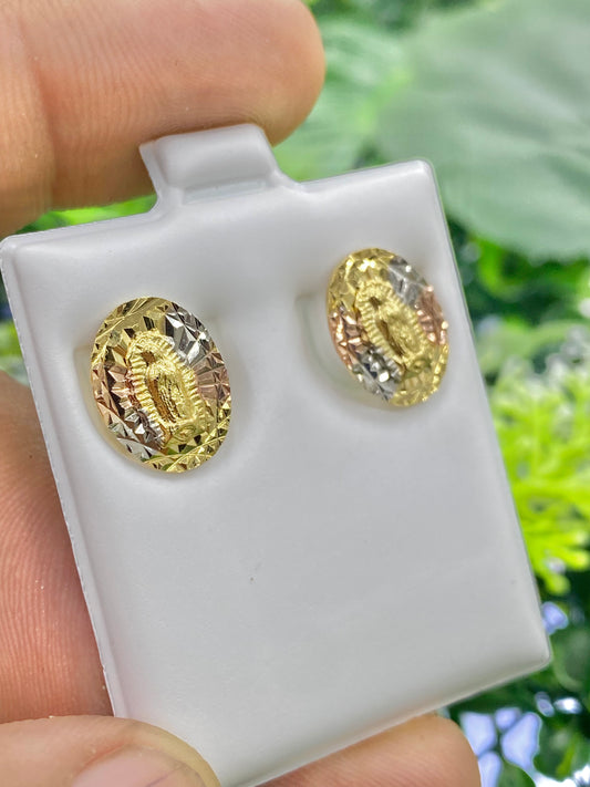 14K Gold Filled Tri Color Virgen de Guadalupe Stud Earrings Push Back 13x10mm / Everyday Earrings / Women's Earrings / Aretes de Guadalupe Tres Colores en Oro Laminado
