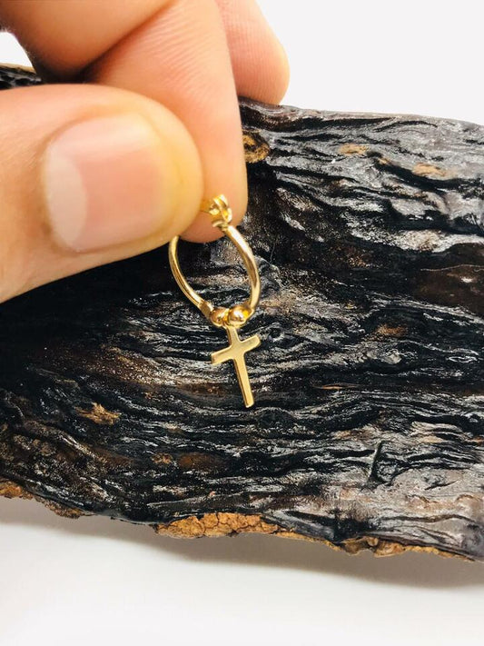 14K Yellow Gold Filled Cross Earrings Ball Hoop Design Womens Girls Gifts 16x13mm
