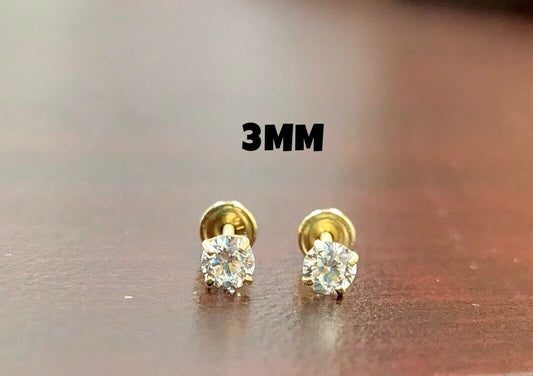 CZ Stud Round Solitaire Earrings Screw Back 10K Yellow Gold Earrings Womens Mens 3mm Everyday Earrings Dainty / Aretes de Oro 10K Real Piedra Zirconia