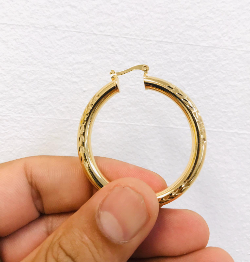 Big Size Diamond Cut Hoop Earrings For Womens Ladies Girls in Gold Filled 1.75x1.5" / Dainty Hoop Earrings / Argollas de Oro Laminado Mujer