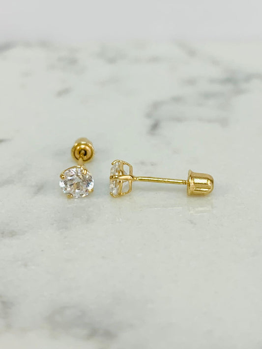 CZ 14K Solid Gold Stud Earrings / Screw Back Earrings / Kids Womens Jewelry / Gold Earrings for Everyday / Aretes en Oro Solido Real con Piedras de Zirconia Para Mujer