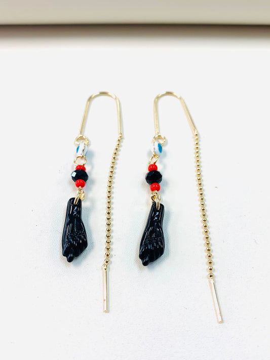18K Gold Filled Azabache Hand Earrings Evil Eye Threader Earrings for Womens Ladies Girls / Aretes de Azabache y Mal de Ojo en Oro Laminado