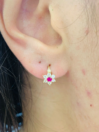 Huggies Hoop Earrings July Birthstones 9x11 for Baby Girls Kids 10K Yellow Gold Tiny Huggies Earrings Ruby Gemstone Earrings Aretes de Oro