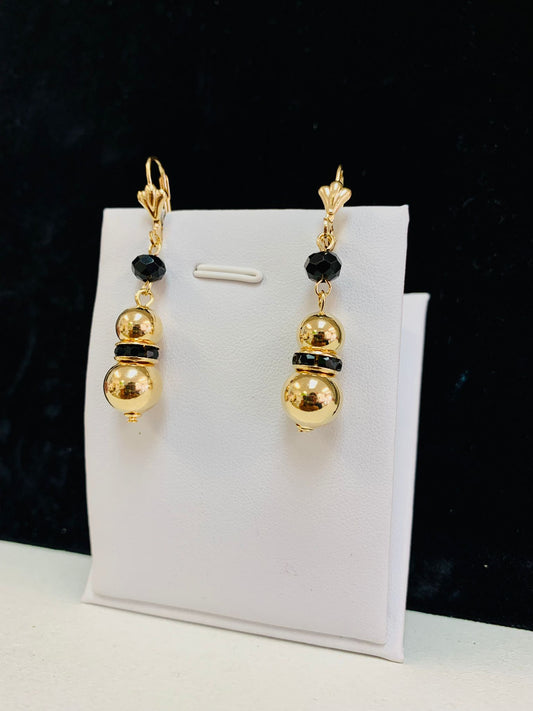 Black Gold Dangle Ball Lever Back Earrings / 14K Gold Filled Earrings / Womens Dangle Earrings / Black Stones Earrings / Aretes para Mujer Colgantes