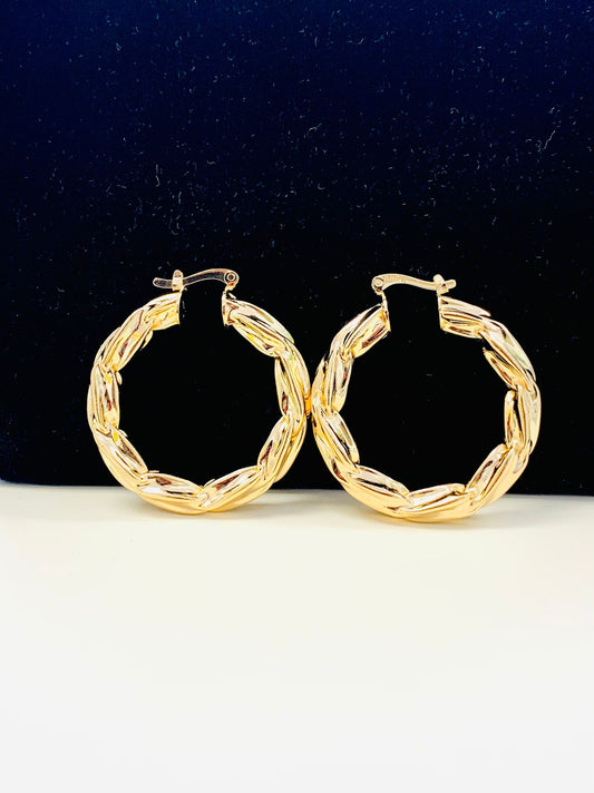 18K Gold Filled Hoop Earrings for Womens 1.5x1.4” 6.4mm 9g, Twisted Hoop Earrings.