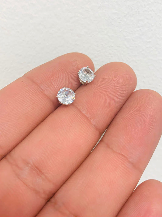 925 Sterling Silver Stud Earrings 6mm For Womens Mens Push Back / Aretes Plata Pura para Mujer Hombre