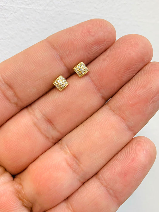 Square CZ 10K Gold Earrings Stud Push Back 4.5x4.5mm for Kids Womens / Everyday Earrings / Dainty Gold Earrings / Aretes de Oro Solido 10K