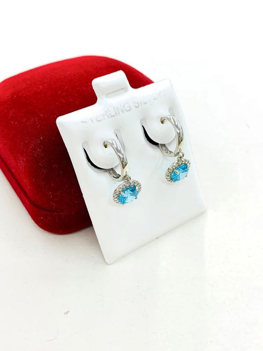 925 Sterling Silver Round CZ Dangling Huggies Hoop Earrings Birthstones Women's 12mm