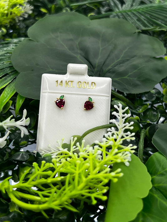 14K Yellow Gold Apple CZ Nose Stud Earrings 7x6mm Womens Jewelry Gifts