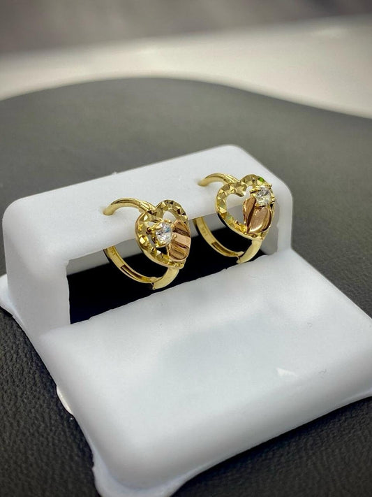 Hoop Earrings Heart Tricolor CZ 14K Yellow Gold Kids Girls Womens Gifts Fashion