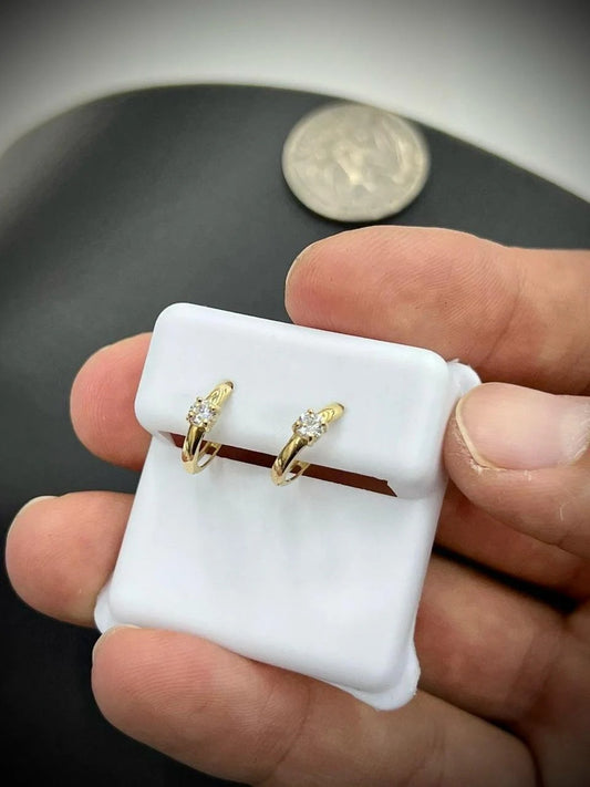 CZ Huggies Hoop Earrings 14K Yellow Gold 13x11mm Gifts Fashion For Ladies And Womens