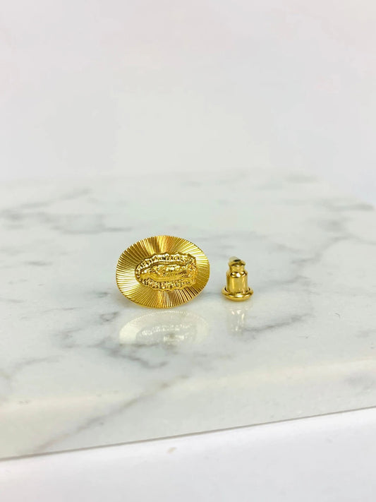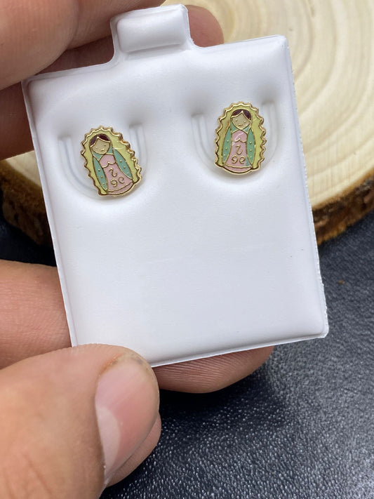 Virgen de Guadalupe Stud Earrings 14K Small Diamond Cut GF 13x10mm Jewelry Gifts Elegance For Girls Ladies Womes
