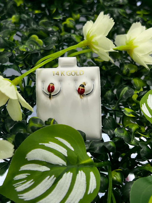 Lady Bug Earrings Hoop Huggies 14K Yellow Gold 10x10mm Gifts Jewelry Womens Kifs Girls
