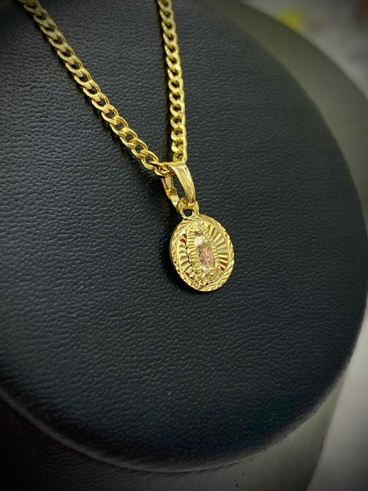Round Virgen De Guadalupe Necklace Diamond Cut 14K Gold Filled Kids Unisex Adults 14x11