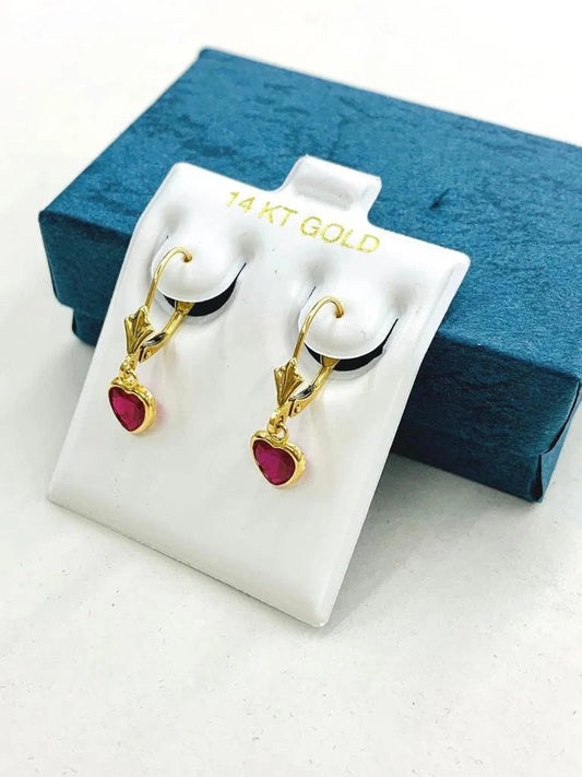 Solid Yellow Gold 14K Birthstone Earrings 6x6mm Lever Back Heart Drop Earrings For Womens And Ladies
