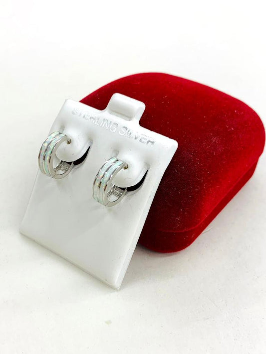 925 Sterling Silver Huggies Hoop Earrings White Opal 12mm Fancy Womens Jewelry