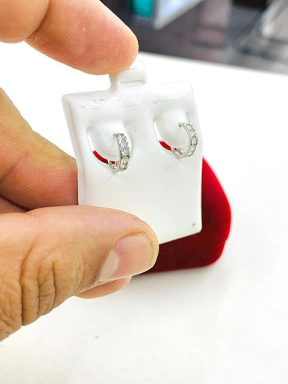 925 Sterling Silver CZ Huggies Hoop Earrings Set Womens Girls Mens Argollas Plata