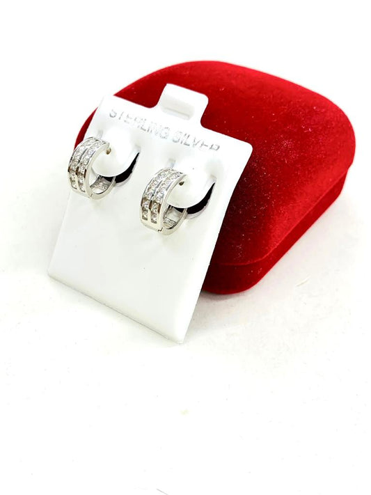 925 Sterling Silver Huggies Hoop Earrings CZ Fancy Womens Mens 12mm