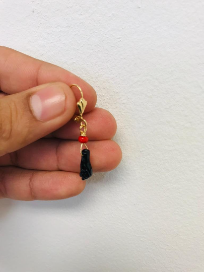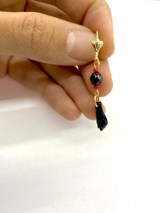 14K Gold Filled Azabache Hands Lever Back Earrings / Protection Jewelry / Evil Eye Earrings / Azabache Earrings / Aretes de Azabache / Aretes Colgantes en Oro Laminado