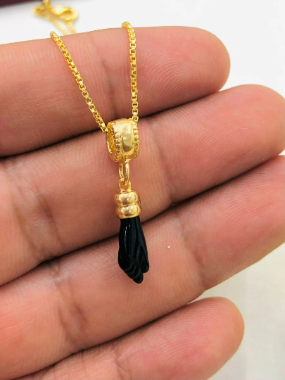 Azabache Hand Necklace Charm Pendant 18" for Boys Ladies Girls/Everyday necklace/ Dainty Azabache Pednant/ Cadena de Azabche/ Box Link Chain