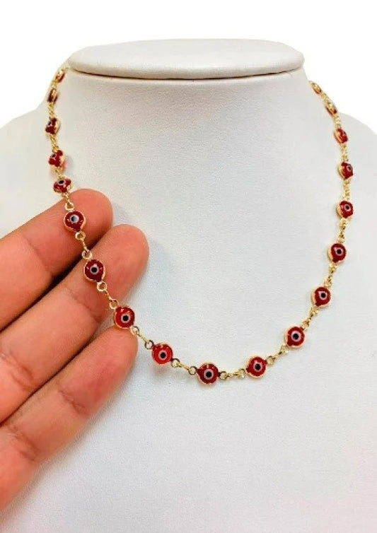 Red Evil Eye Chain Necklace 17.5" GF Fashin Elegant Cadena Mal de Ojo Oro Laminado