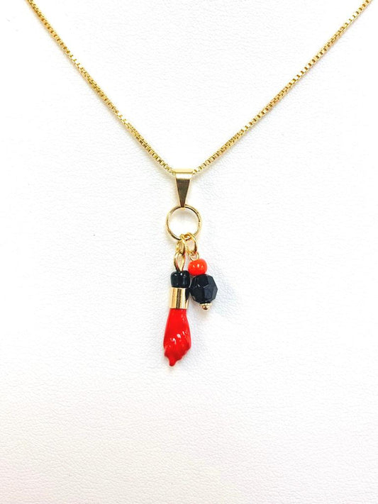 Red Azabache Hand Necklace with Box Link Chain 20" for Womens Black Red Bead Good Luck Necklace / Dije de la Mano de Azabache con Cadena Box Link en Oro Laminado