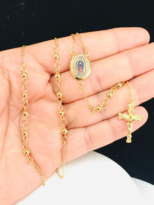Rosario de la Virgen de Guadalupe 14K Gold Filled Rosary Necklace Cross Pendant