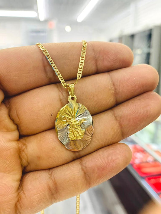 Saint Michael Pendant Necklace 26x18mm for Womens Mens Tri Color Gold Filled San Miguel Necklace Mariner Chain 20" Cadena y Dije San Miguel