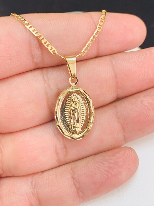 Virgen de Guadalupe Pendant Necklace Fancy Christian Jewelry Valentino Chain 20" Womens