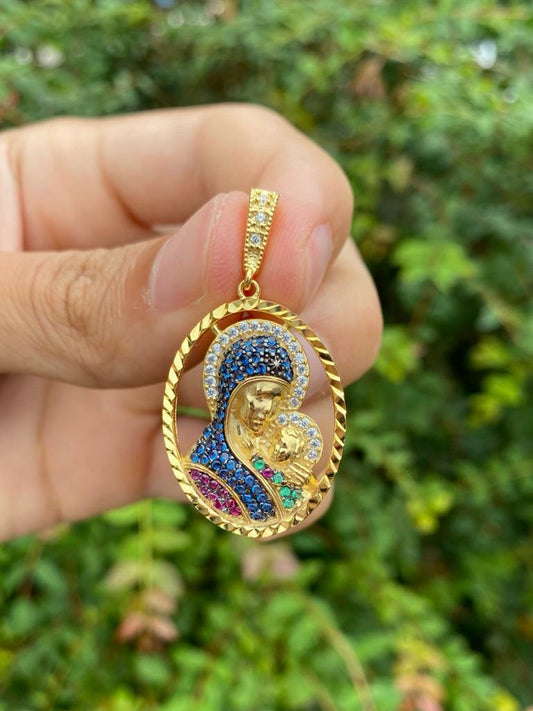 14K Gold Filled Virgin Mary Necklace Set 20", Tri-Color Pendant With CZ Diamond 28x20mm / Everyday Necklace/ Virgen Mary Pendant / Dije de la Virgen Maria