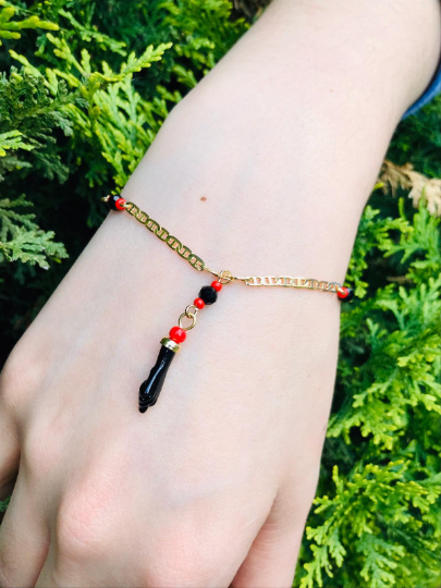 14K Gold Filled Women's Azabache Bracelet Good Luck 7.5" / Figaro Link Bracelet / Pulsera de Azabache Para Mujer Oro Laminado