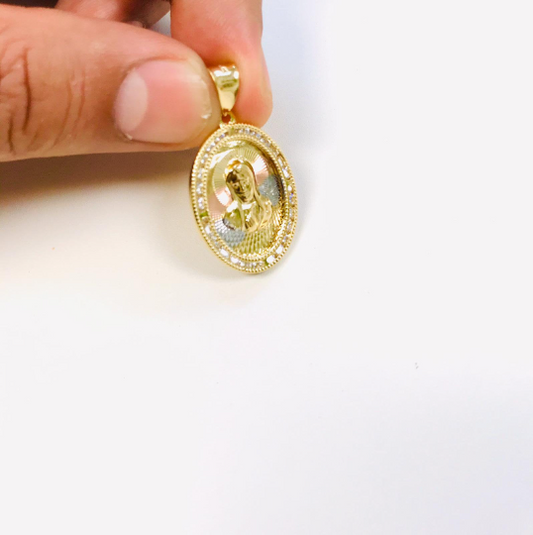 14K San Judas Pendant with CZ Stones Around Tri Color 28x20mm / Saint Jude Pendant for Womens Mens / Dije del San Judas Tres Colores de Oro Laminado