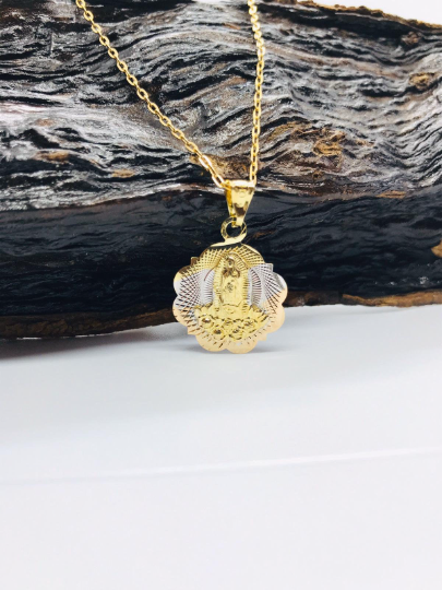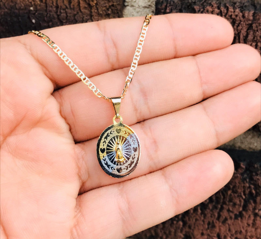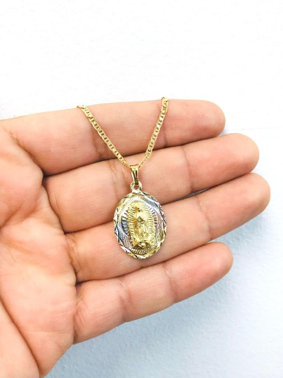 14K Real Gold Filled Virgen de Guadalupe Necklace Pendant 18” 20x14mm Tri-color / Dije y Cadena de la Virgencita de Guadalupe