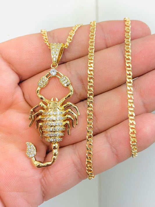 18K Gold Filled CZ Scorpion Necklace Cuban Link Chain 20" For Mens
