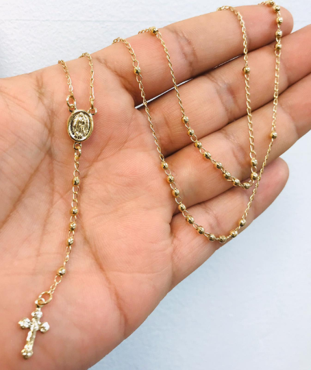 14K Gold Filled Virgen de Guadalupe Rosary 24” 2.5mm Beads