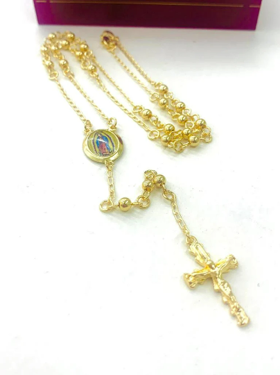 Rosario de la Virgen de Guadalupe 14K Gold Filled Rosary Necklace Cross Pendant