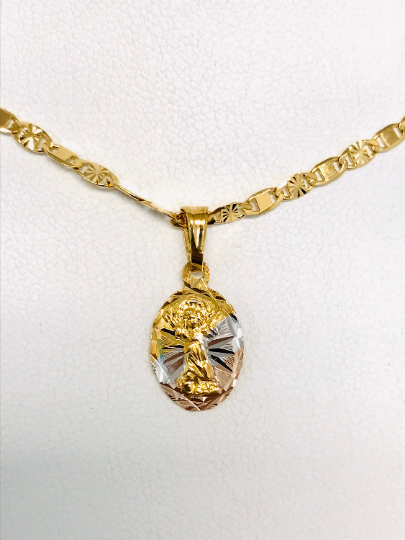Baby Jesus Necklace Tri-Color Gold Filled Divino Niño Necklace 16x10mm Everyday Necklace /Cadena y Dije del Divino Niño Oro Laminado / Valentino Link Necklace
