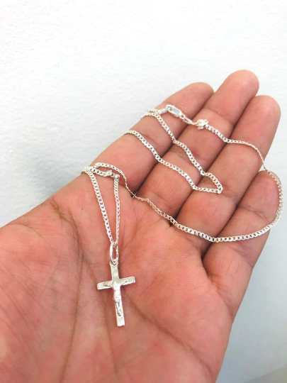 925 Sterling Silver Cross Necklace for Men's Women's Cuban Link Chain 20" / Cross Pendant in Silver 23x13 / Womens Jewelry / Crucifix Necklace in Silver