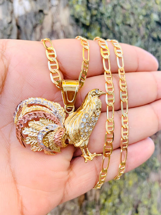 Rooster Necklace Pendant 33x45mm For Mens Figaro 24" 18K GF - Prime Jewelry 269