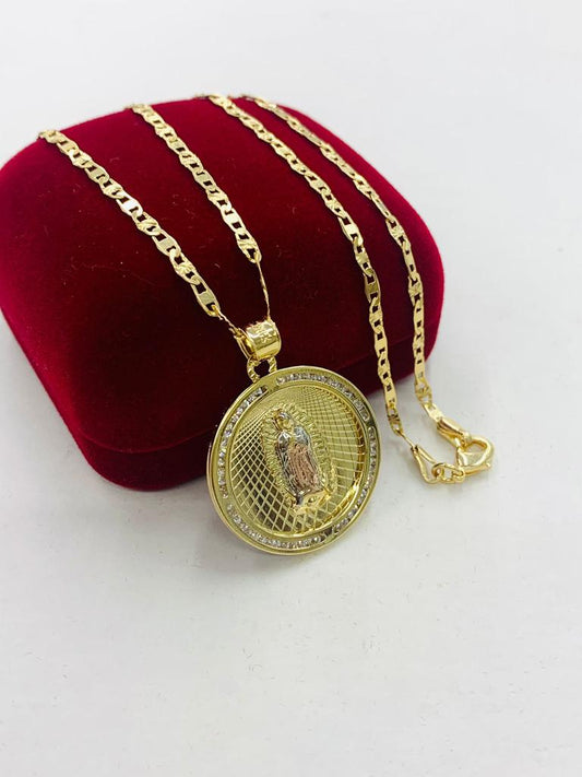 14K Gold Filled Virgen de Guadalupe Necklace Pendant 28x25 Valentino Chain.
