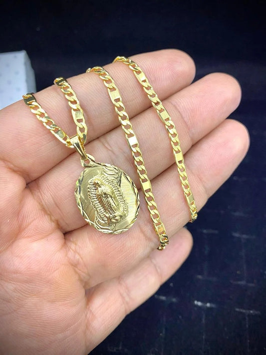 Virgencita de Guadalupe GF Necklace Pendant 14K Chain Jewelry Fashion For Ladies and Womens