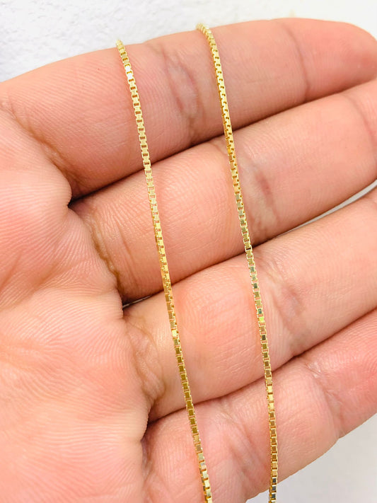 Cadena de Oro Solido Real 14K Box Link para Ninos Collar Súper Delicado 16" 0.8mm / 14K Yellow Gold Box Link Chain Dainty Necklace for Kids