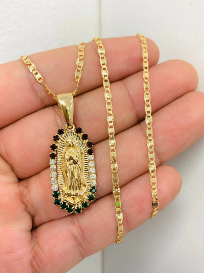 CZ Virgen de Guadalupe Necklace Valentino Chain Virgin Mary Necklace / Looks Like Gold Pendant / Dije de la Guadalupe / Gold Filled Jewelry