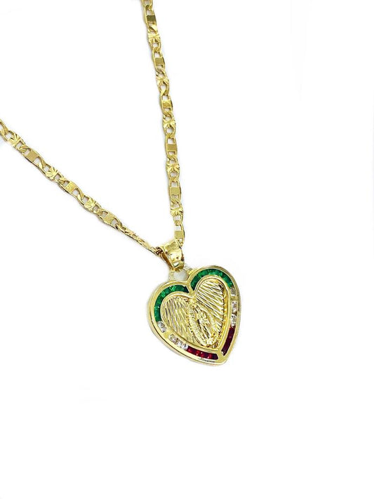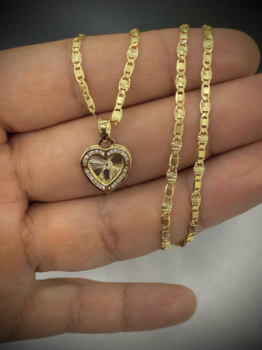 CZ Heart Virgen de Guadalupe Necklace Pendant 19x18 Valentino Chain 14K Gold Filled Womens