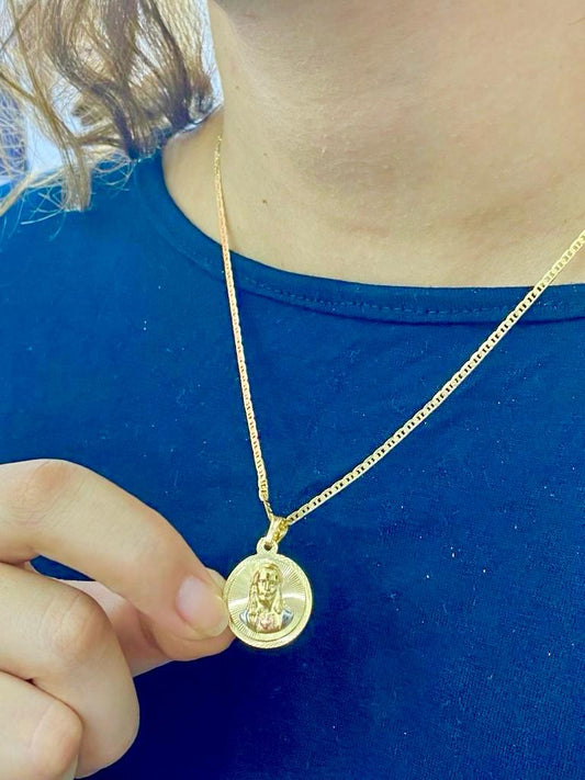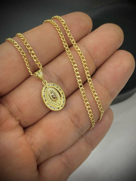Round CZ Virgen de Guadalupe Necklace Mariner Chain Gold Filled Gifts Jewel