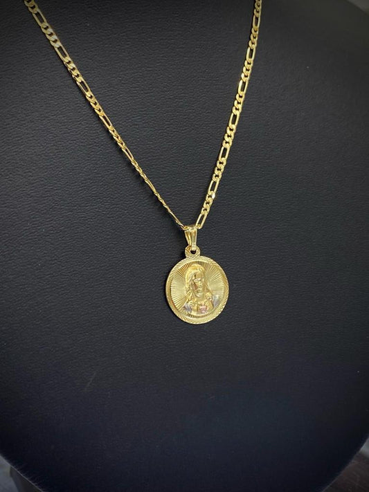 16x14mm Jesus Christ Pendant Necklace Figaro Chain Unisex 14K Gold Filled