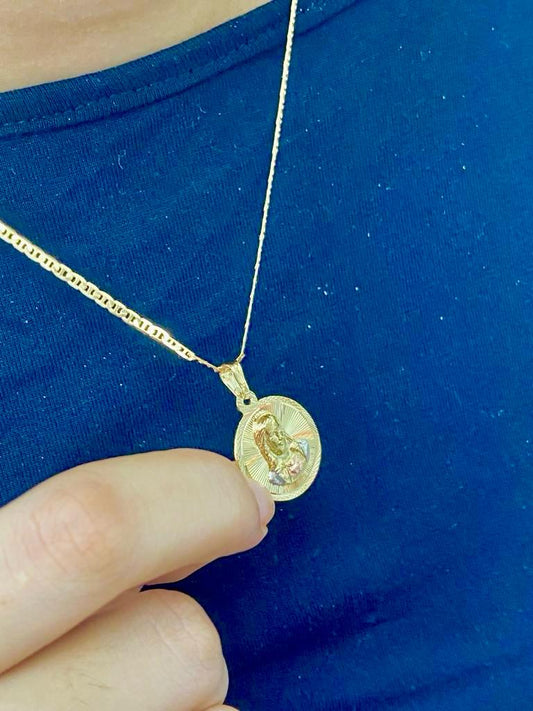 Mariner Chain Jesus Necklace Pendant Mens Womens Gold Filled 21x18 Catholic